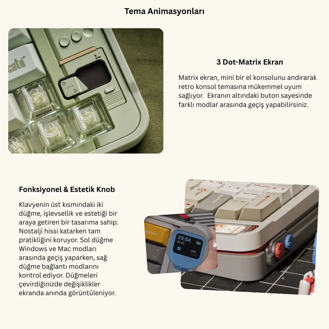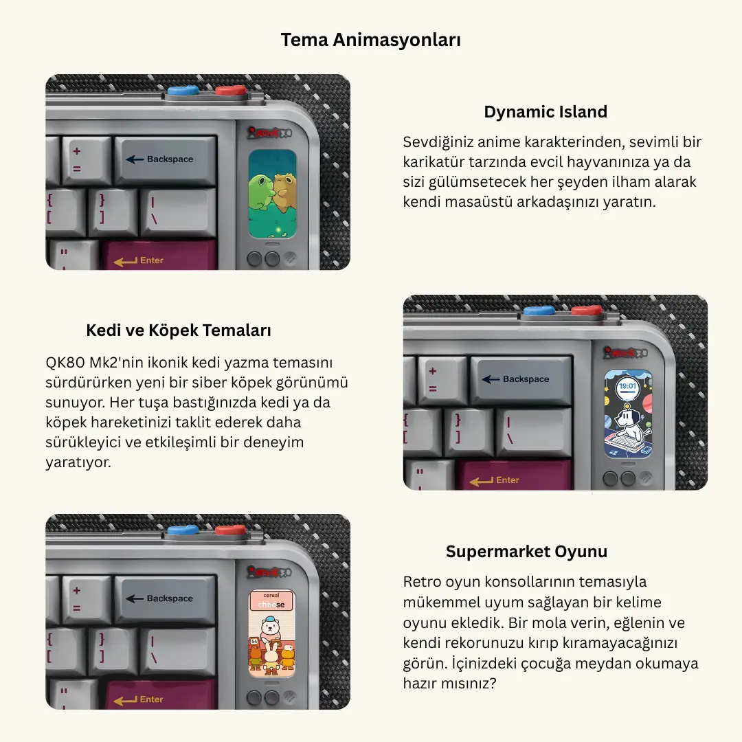 Klavye ürününü mümkün olduğunca iyi temsil edebilmek için olabildiğince gerçek fotoğraflar kullanmaya çalışıyoruz, ancak bu fotoğrafları tamamlamak için ara sıra renderlar kullanıyoruz.