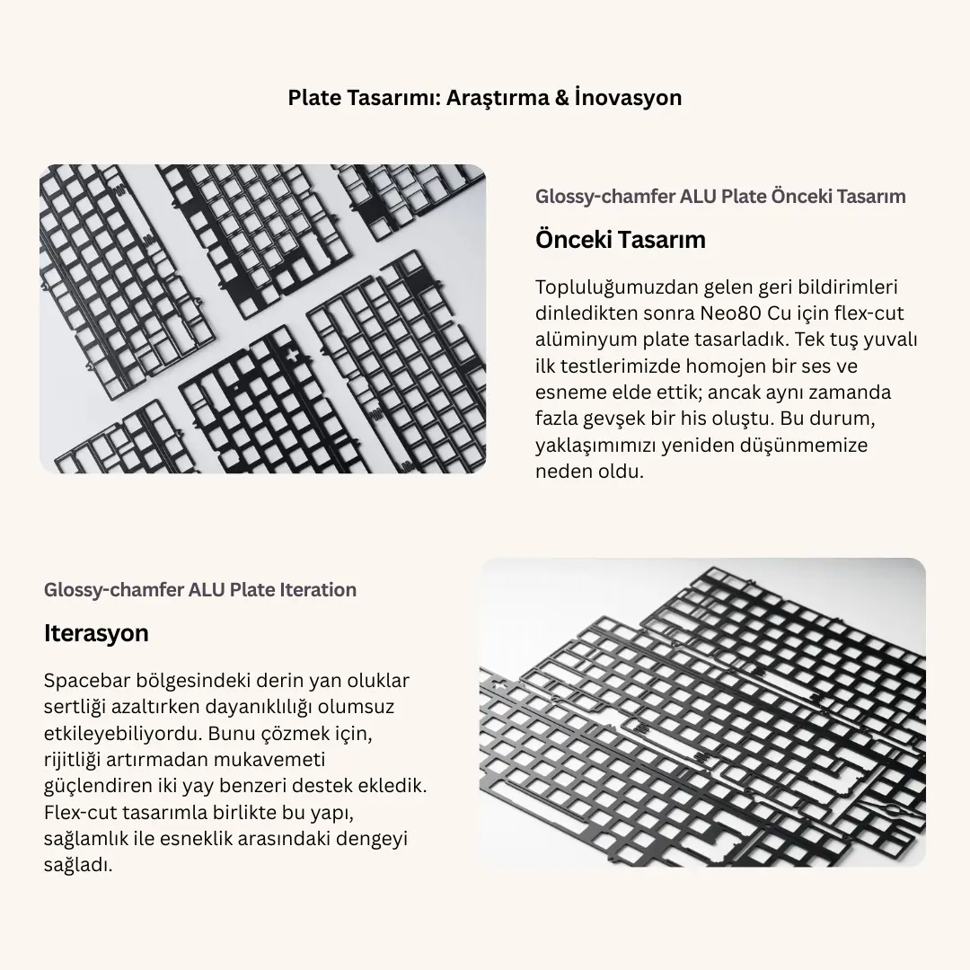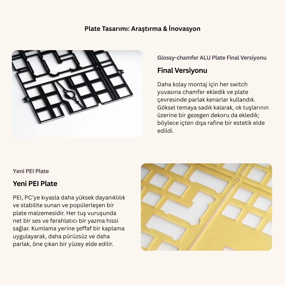 Klavye ürününü mümkün olduğunca iyi temsil edebilmek için olabildiğince gerçek fotoğraflar kullanmaya çalışıyoruz, ancak bu fotoğrafları tamamlamak için ara sıra renderlar kullanıyoruz.